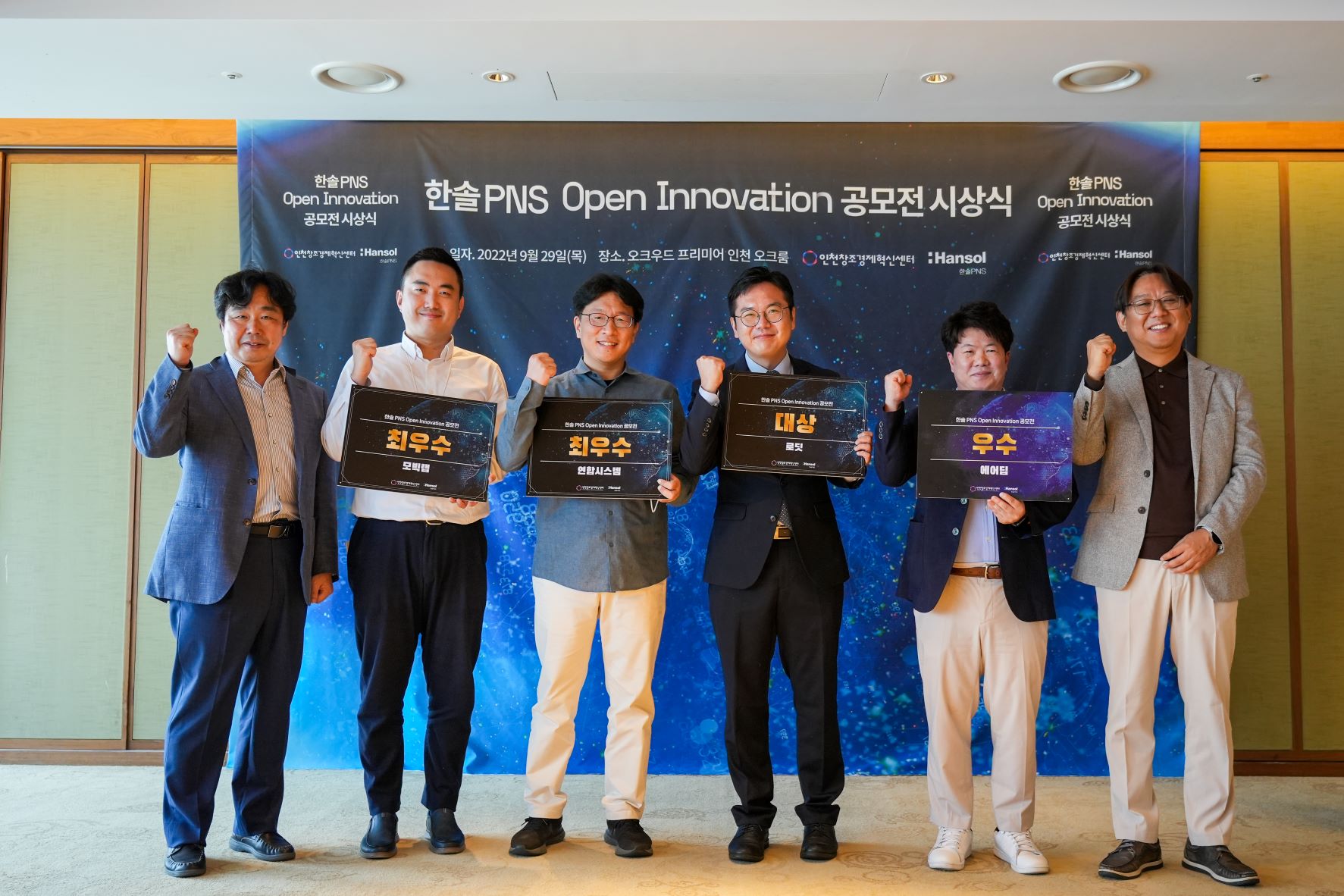 한솔PNS IT서비스부분과 인천창조경제혁신센터는 9월 29일 인천 송도 오크우드 호텔에서 스마트팩토리, 빅데이터 분야 오픈 이노베이션 공모전 최종 시상식을 개최했다.